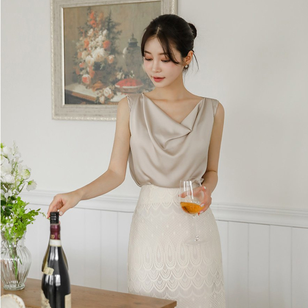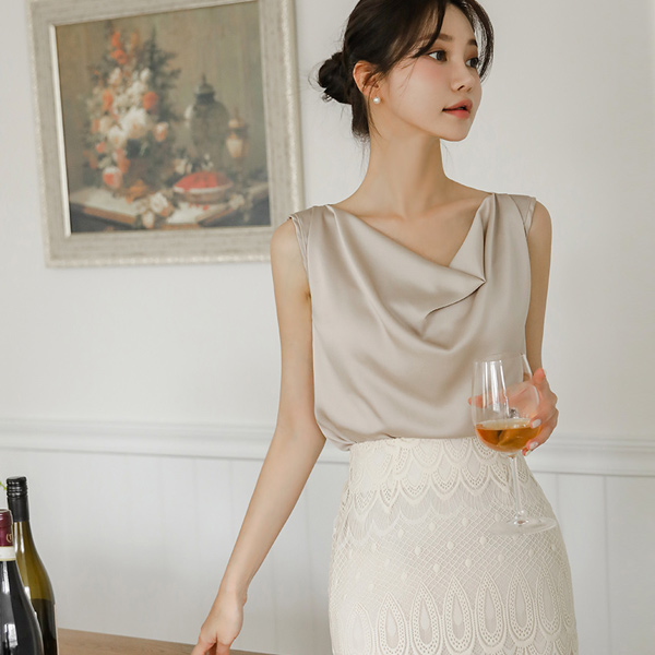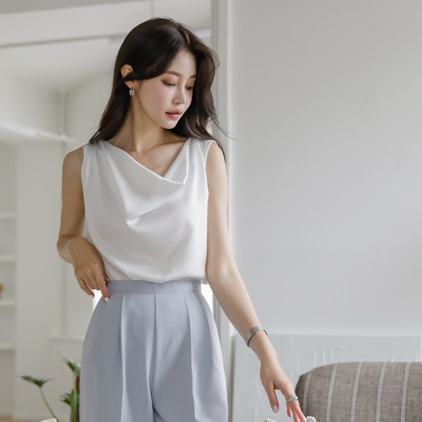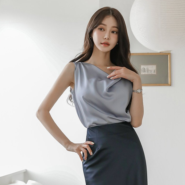 Satin Drape Sleeveless shirts Blouse Ⅱ