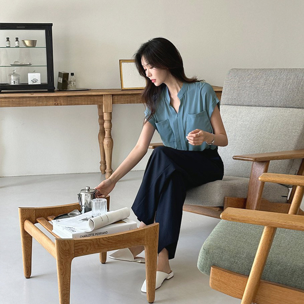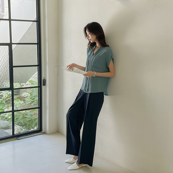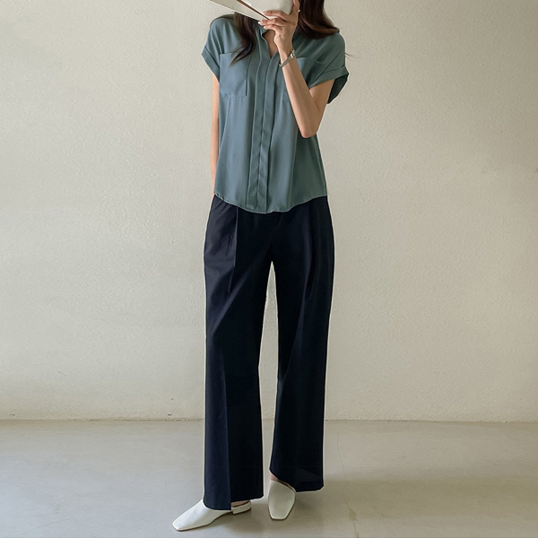 Double Pocket Soft loose fit Cap-Sleeves Blouse