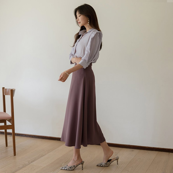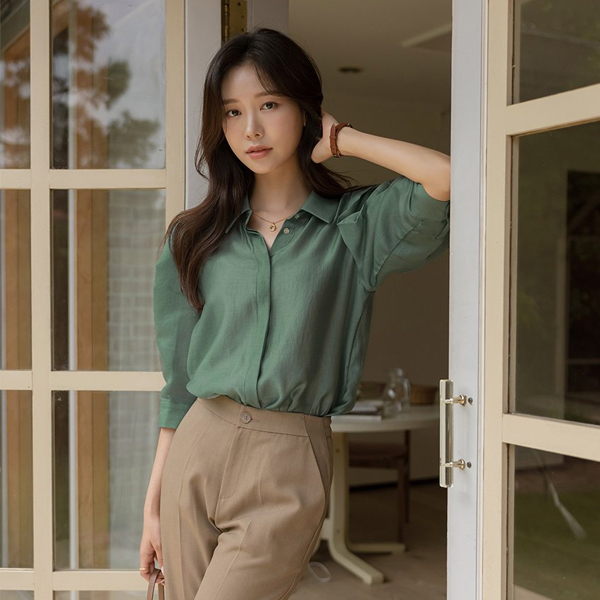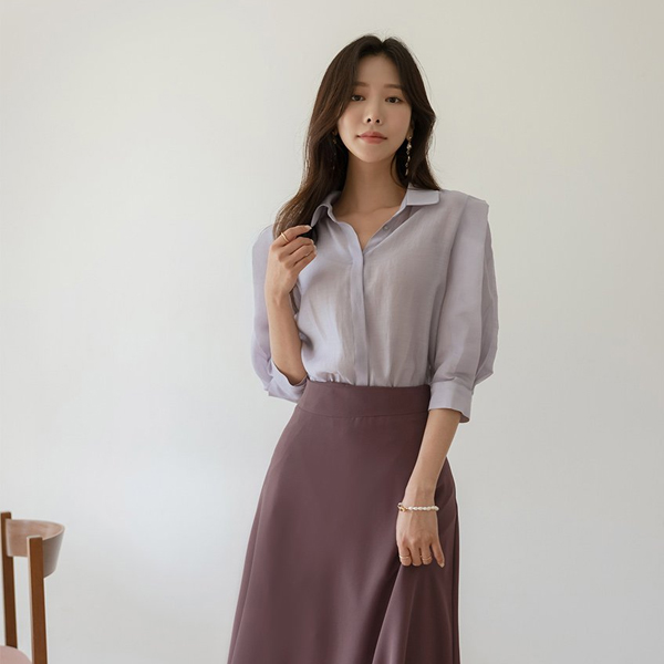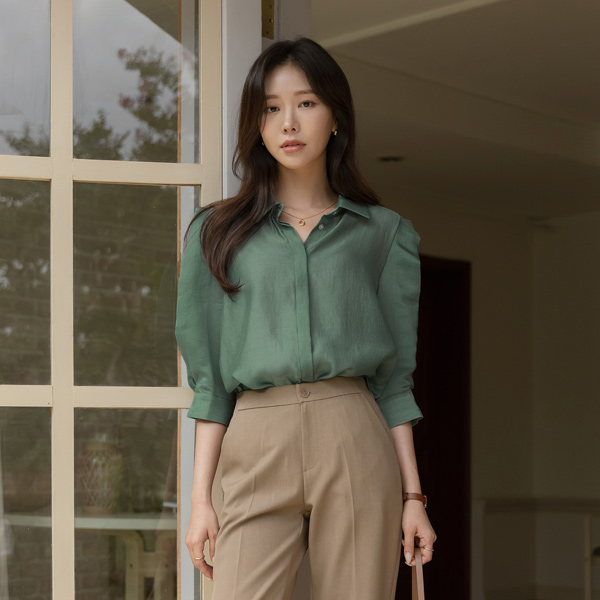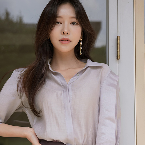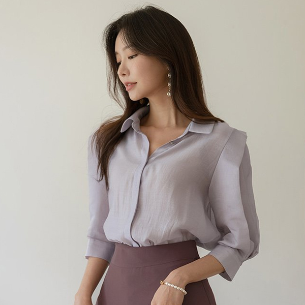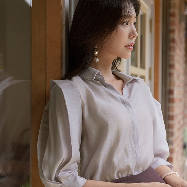 Glossy Point Shoulder Mood Tencel Blouse