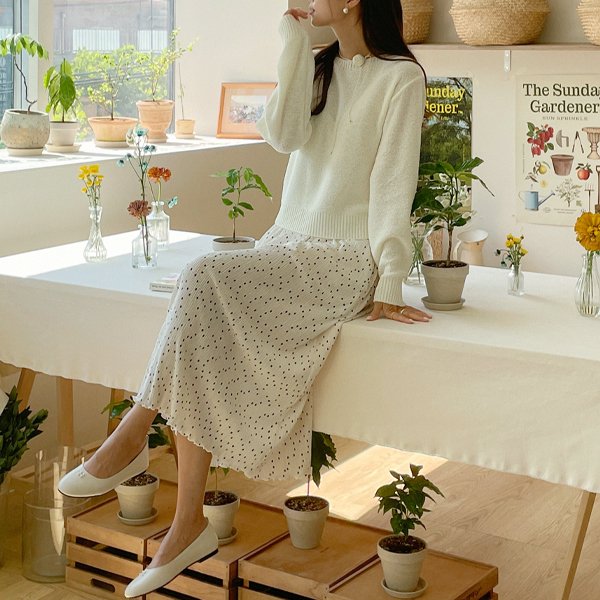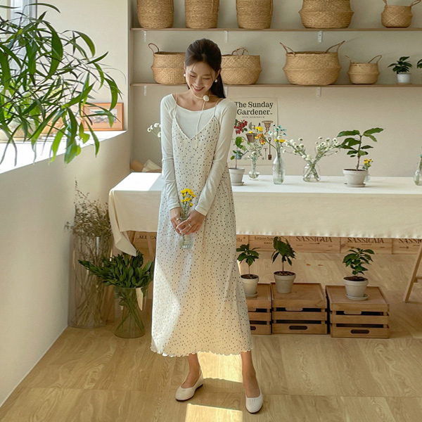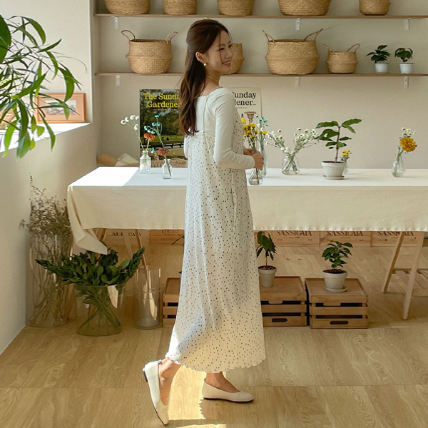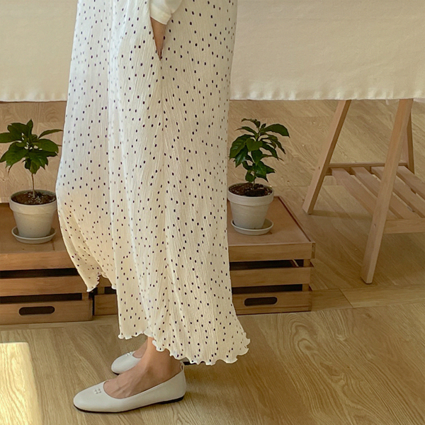 winter's Wrinkle Fabric Dot Slip Long Dress