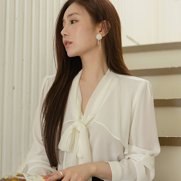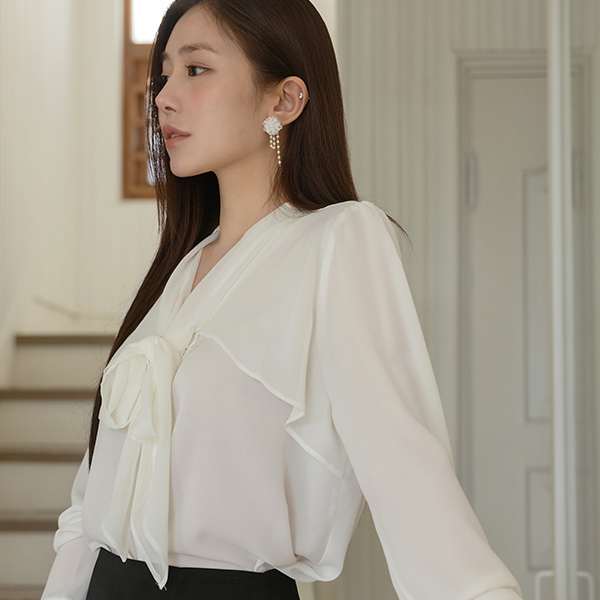 Feminine Chiffon Ribbon neckline Blouse