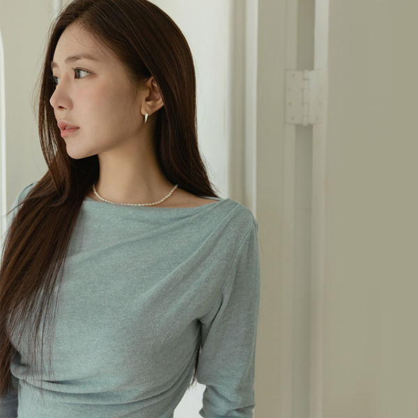 slender Neckline Shirring Tension T-shirt