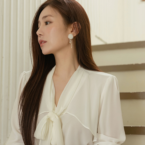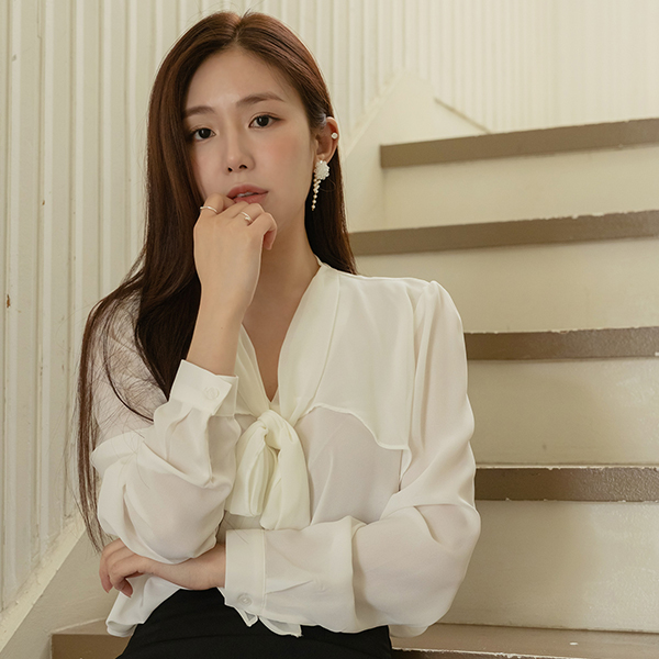 Feminine Chiffon Ribbon neckline Blouse