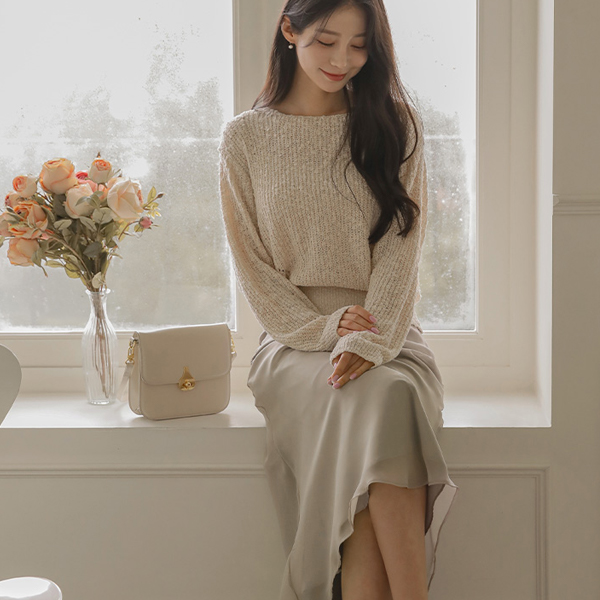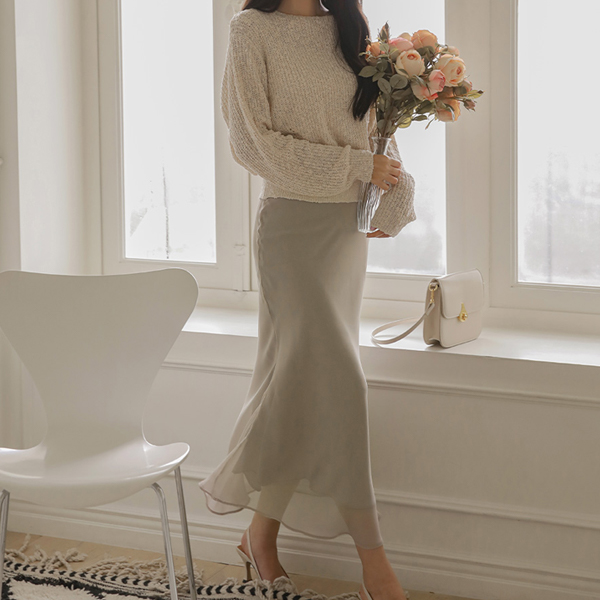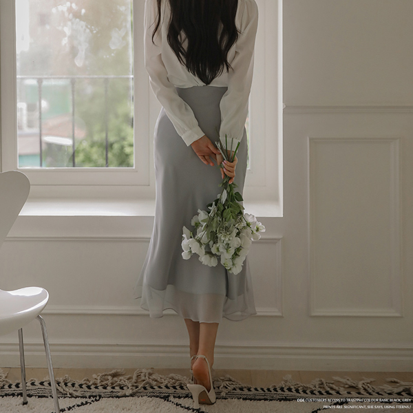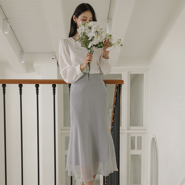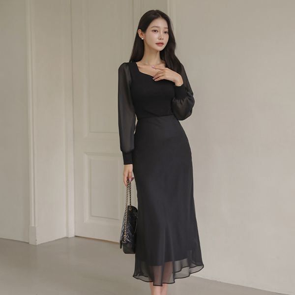 Heart Neck Chiffon Sleeves Color Combination T-shirt