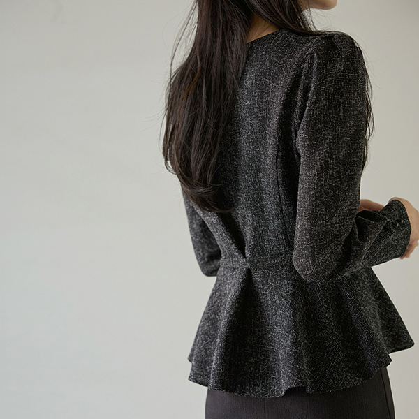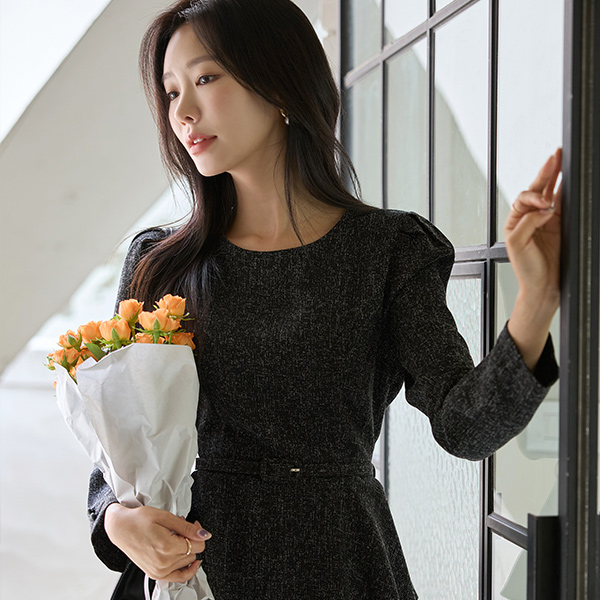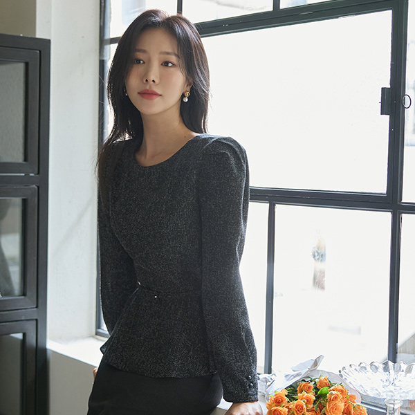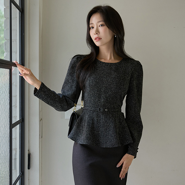 Romantic Puff Peplum Long-sleeve Blouse (BeltSET)