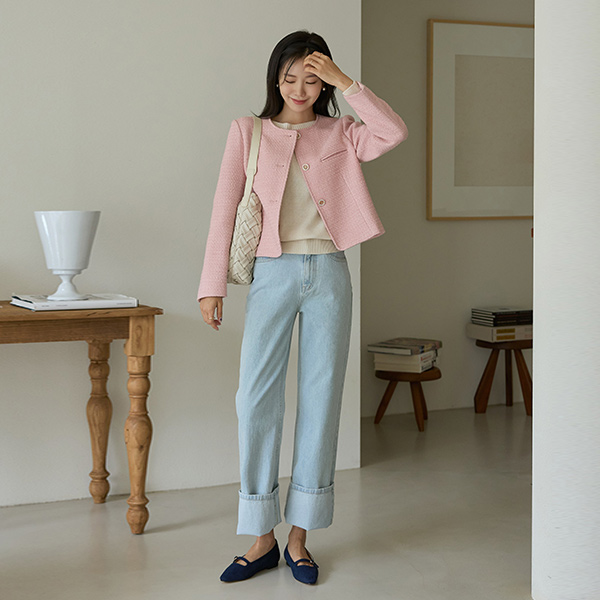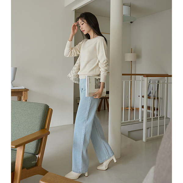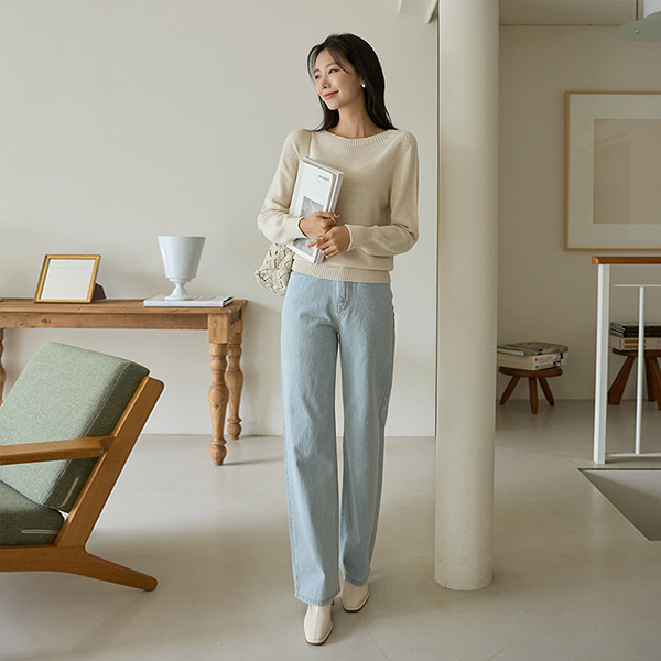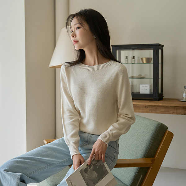 slender Neck-Line Point Color Daily Knit
