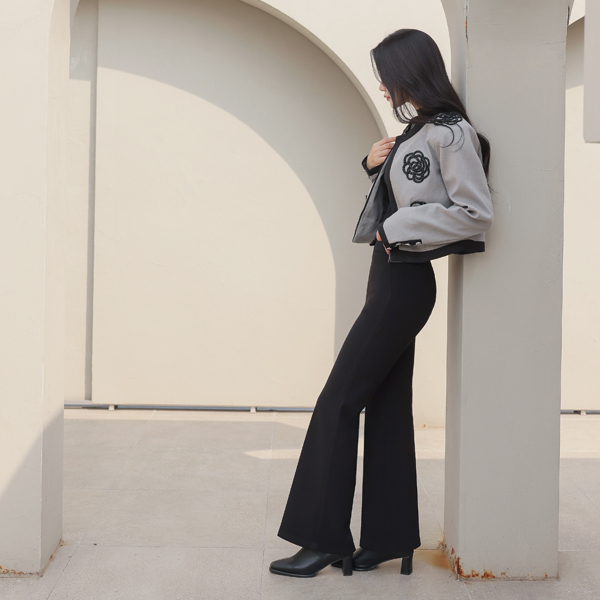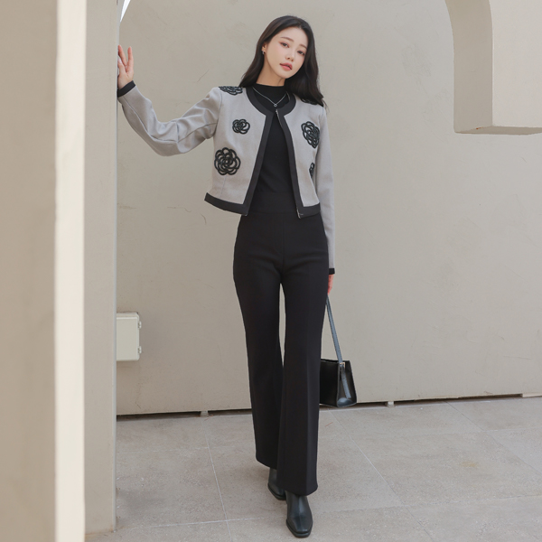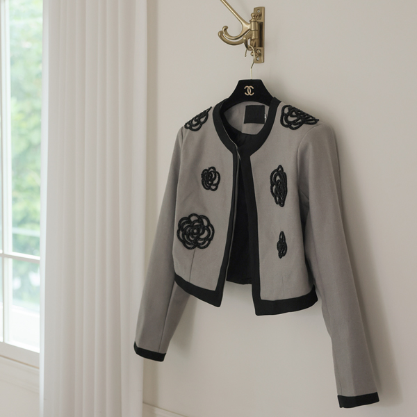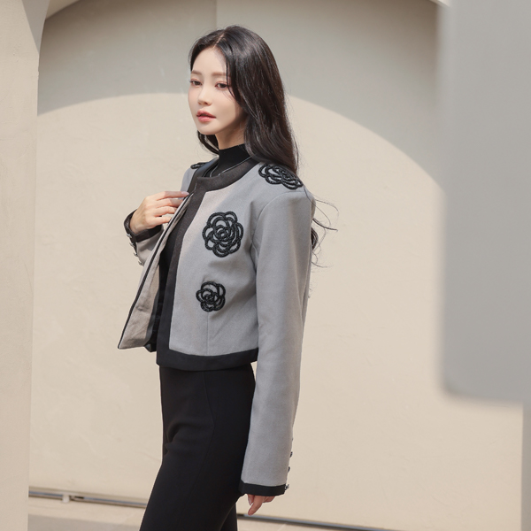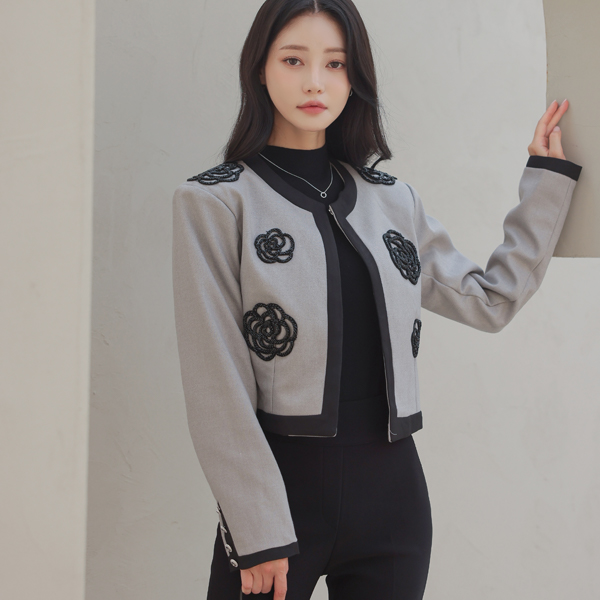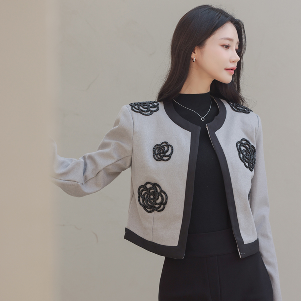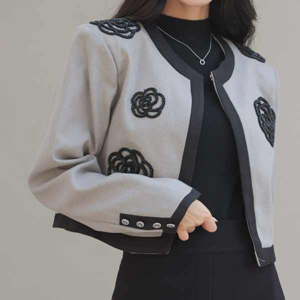 Black Beads Flower Raund neck Jacket