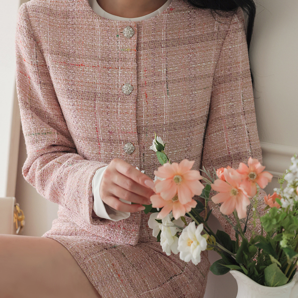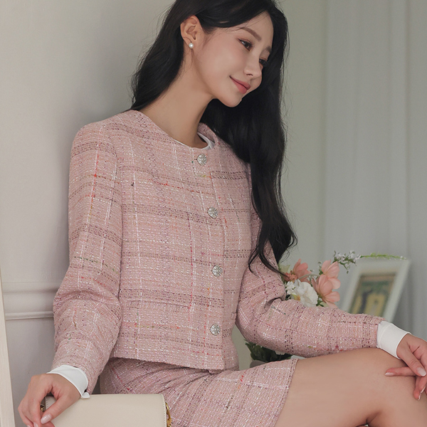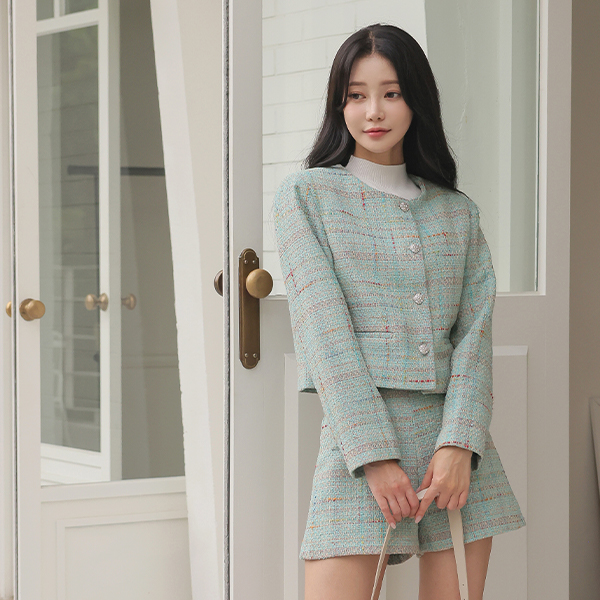 Tweed High-Waist Silver Button Pocket Wool Shorts