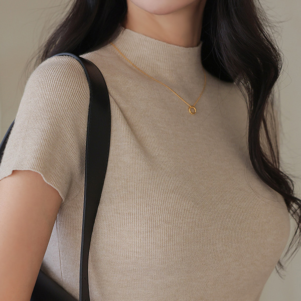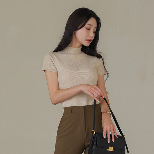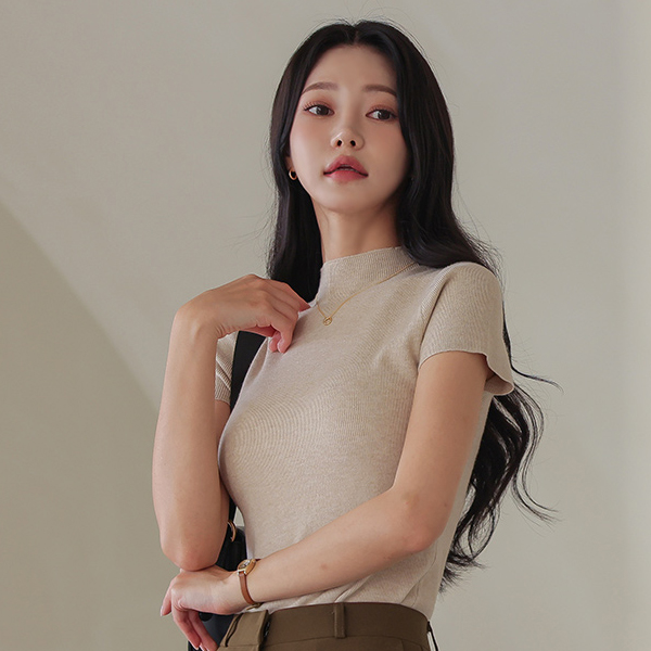 Autumn Color Biscos Half-Neck Cap-Sleeves Corduroy Knit