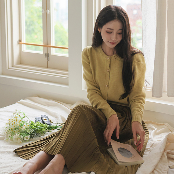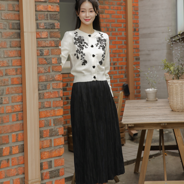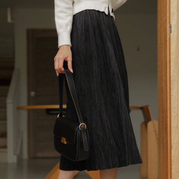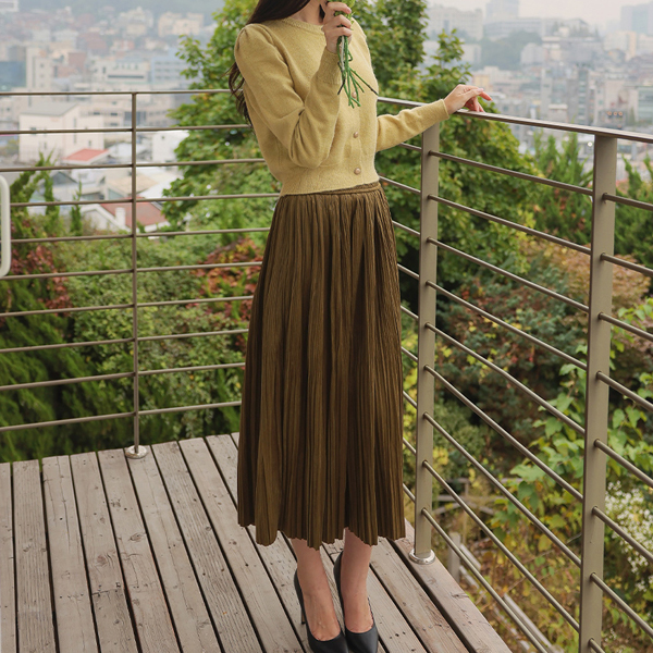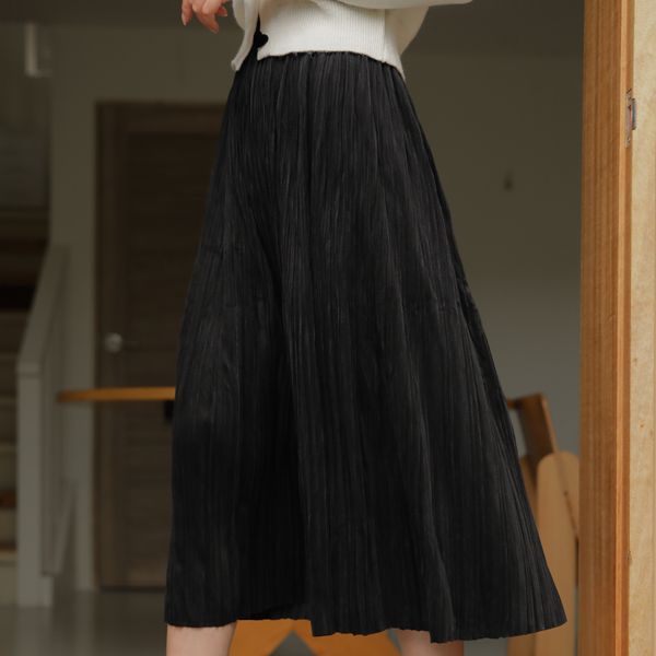 Velvet 잔 Pleats Banding Long Skirt
