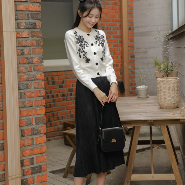 Beads Flower heart Button Cardigan