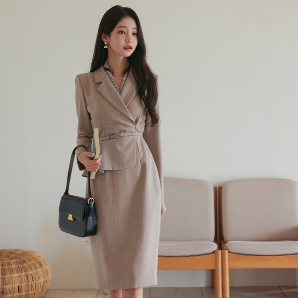 Classic Wrap Collar Unbalance Peplum H-line Dress
