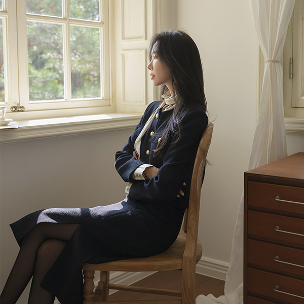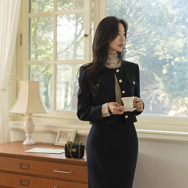 Tweed twinkling thread Gold Button Set-up Jacket