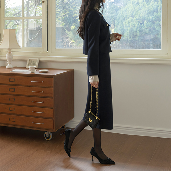 Tweed twinkling thread H-line Set-up Skirt