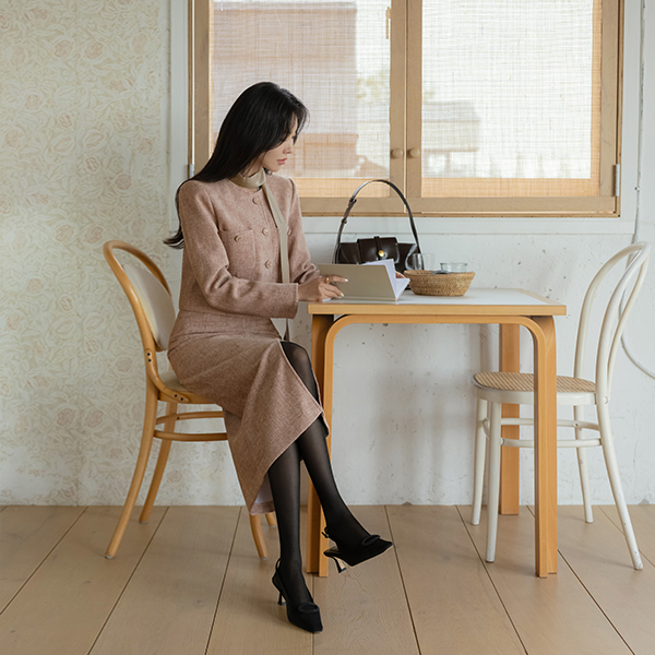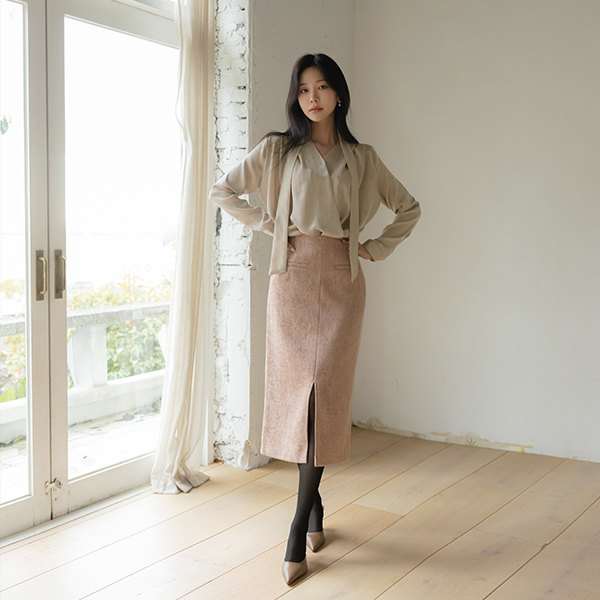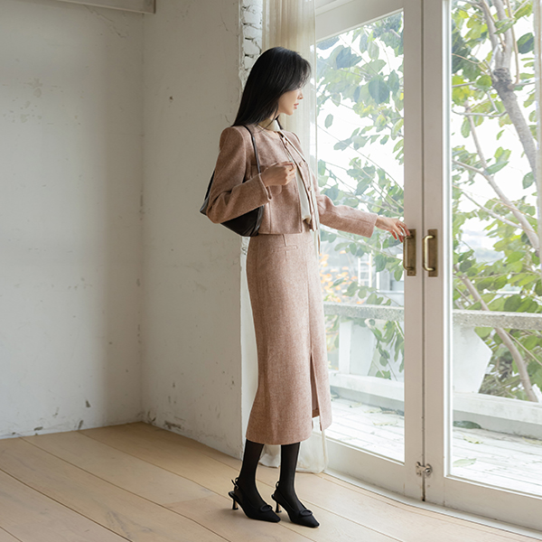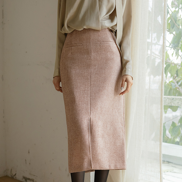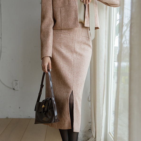 Elysee Cozy Tweed Set-up Slit H-line Skirt