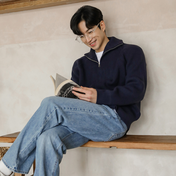 [HOMME] primium Indigo Semi- Wide Denim Pants