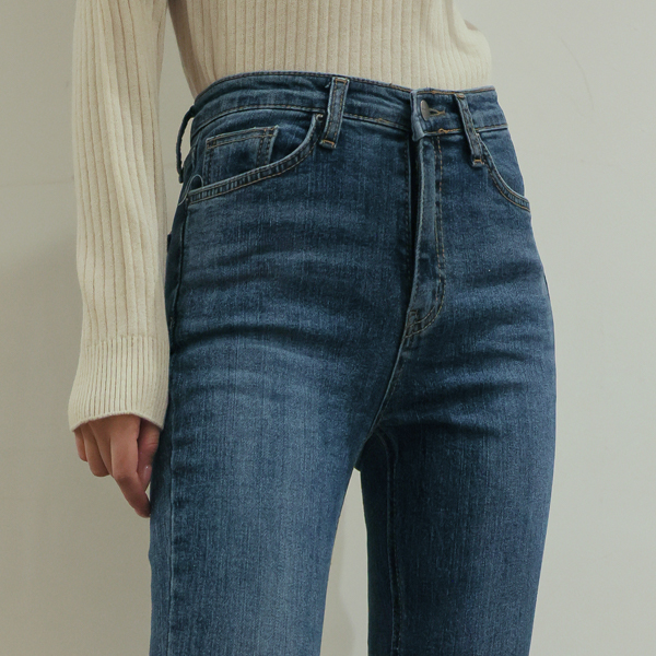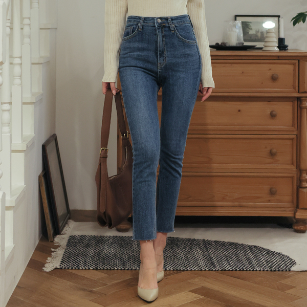 Daily Hidden Banding Hems Cutting Slim Straight fit Denim Pants