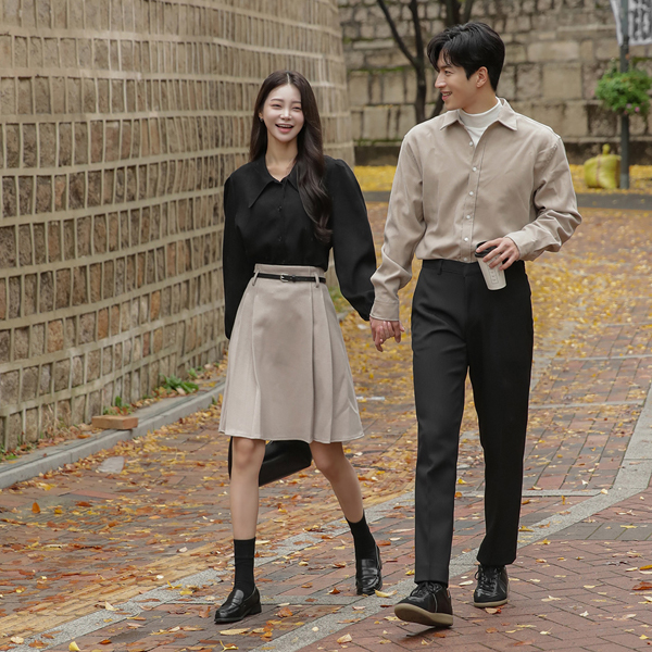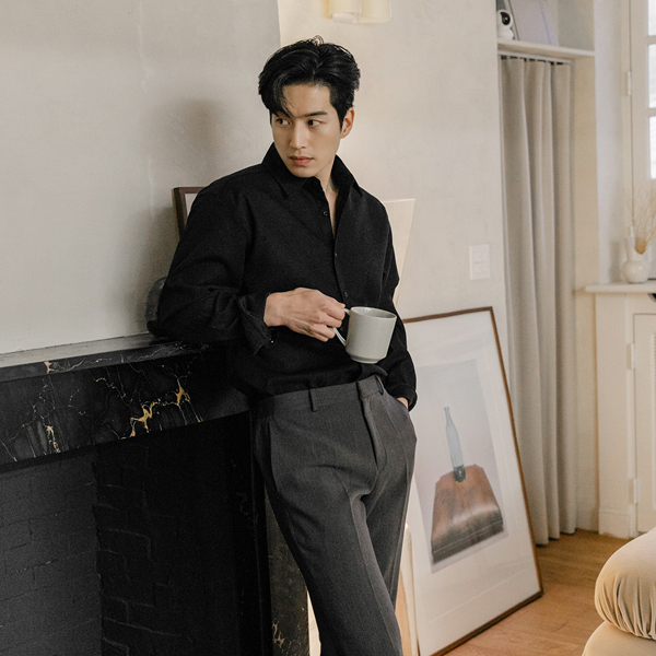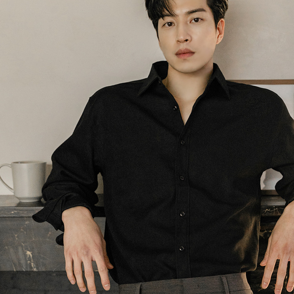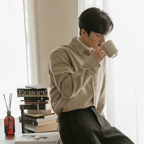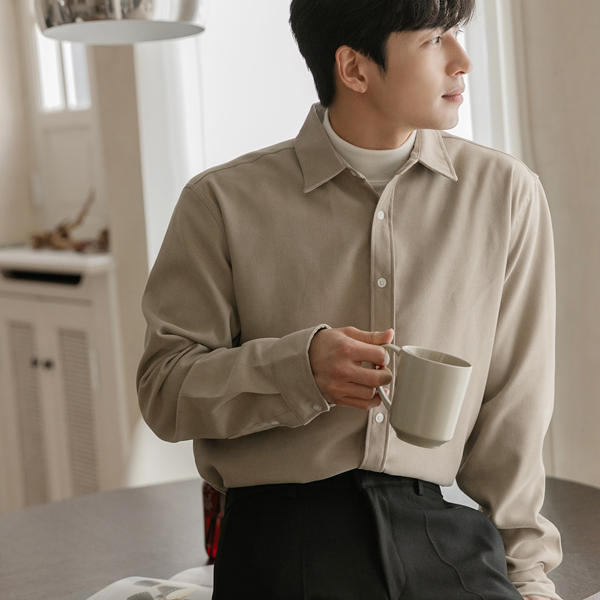 [HOMME] Soft Suede Touch Basic Collar Shirt