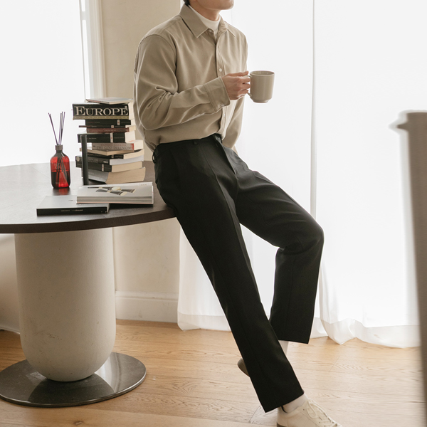 [HOMME] Wrinkle Free The Back Banding Slim Straight fit Slacks