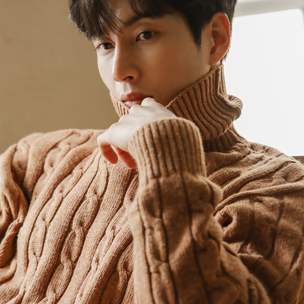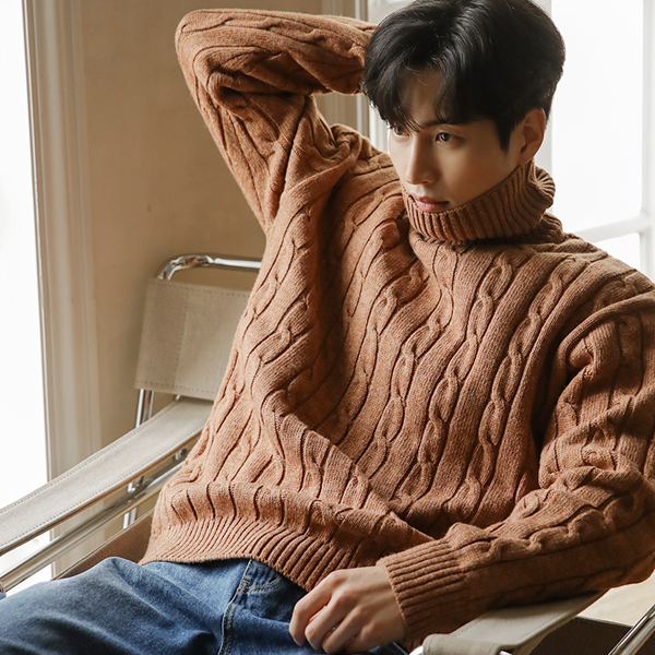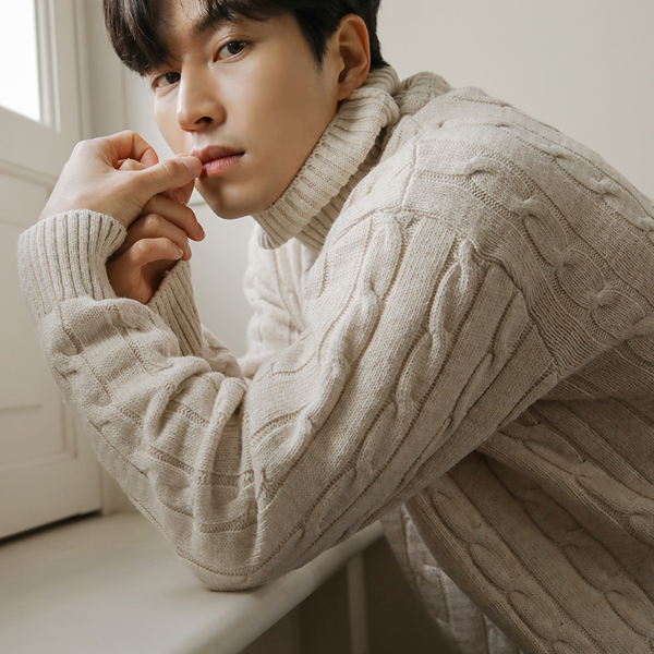 [HOMME] Soft Cable Turtleneck Knit