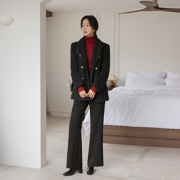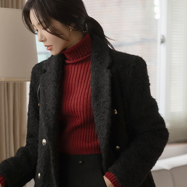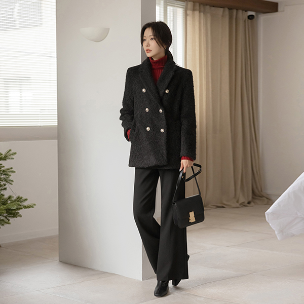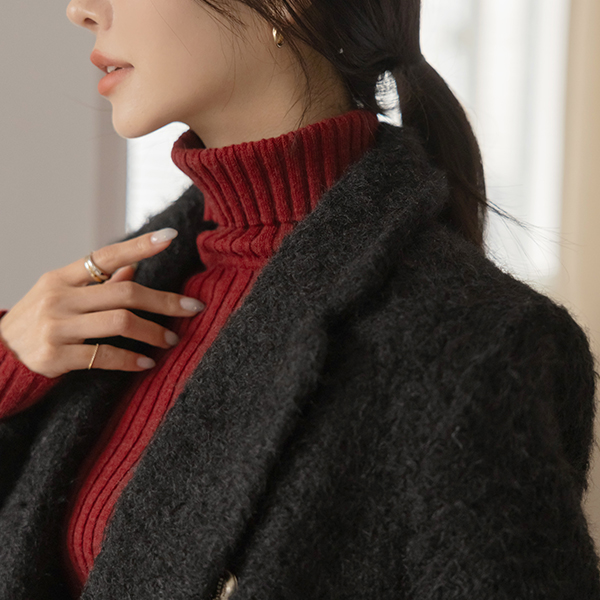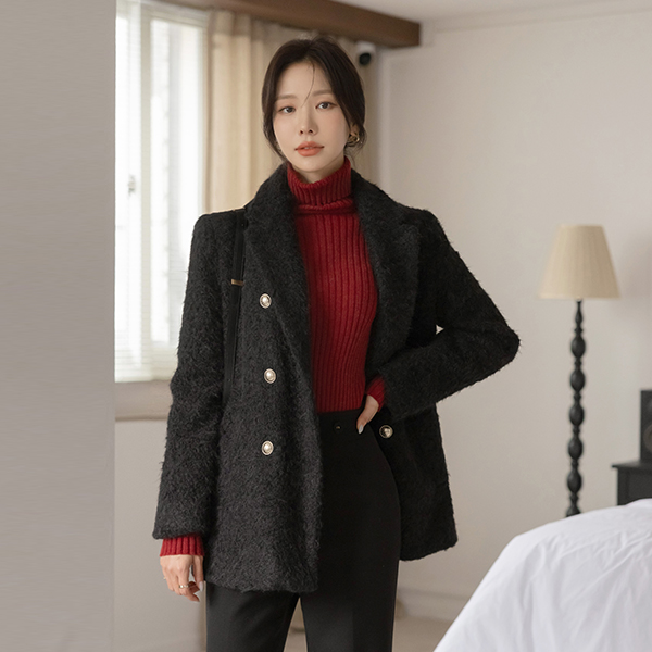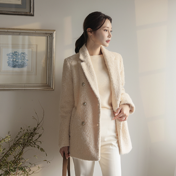 Winter Bouclé Double Button Harp Coat (quilted lining)