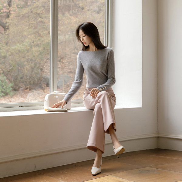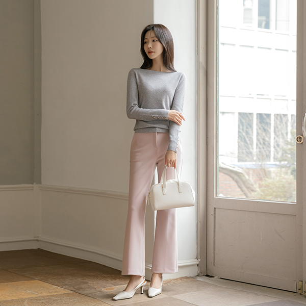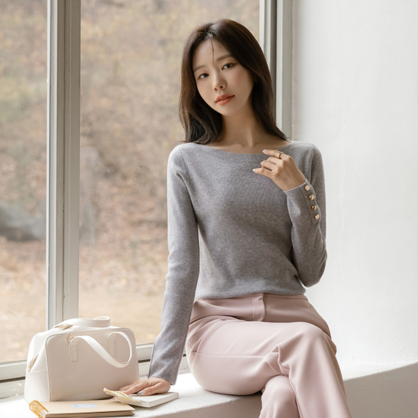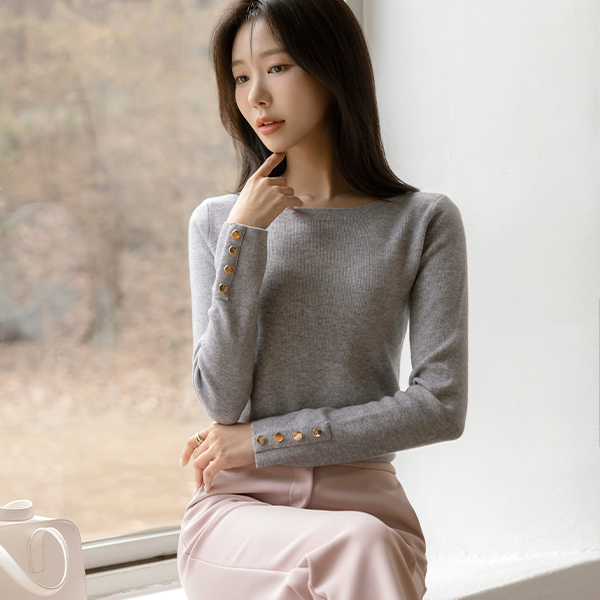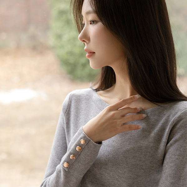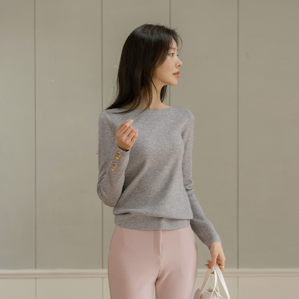 Boat Neck Sleeves Gold Button Knit