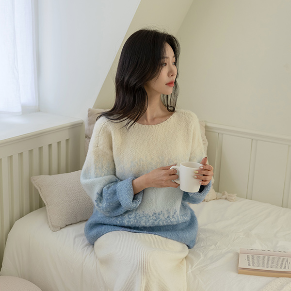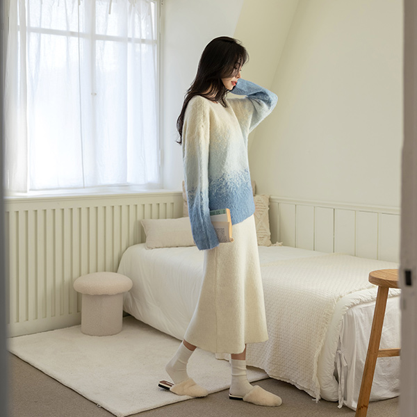 Snow slender Boat Neck Soft loose fit Wool Knit