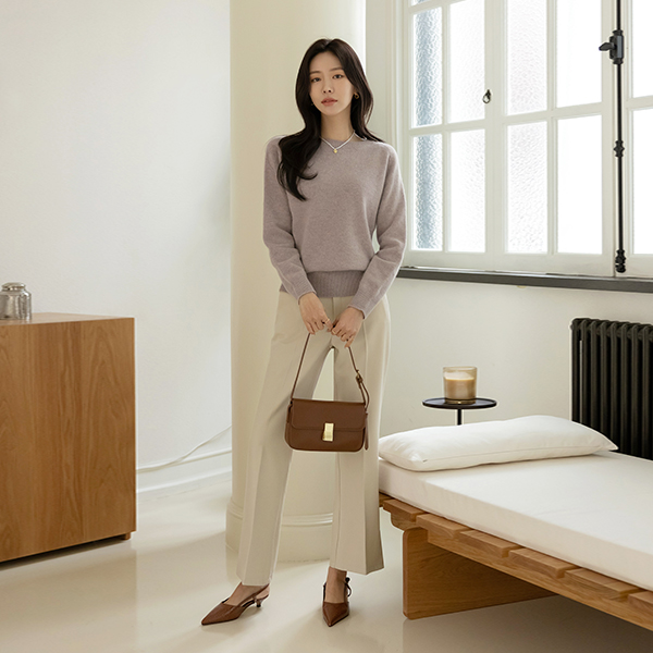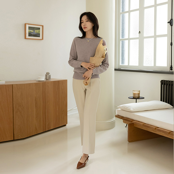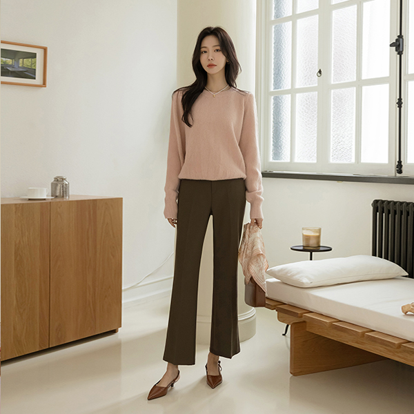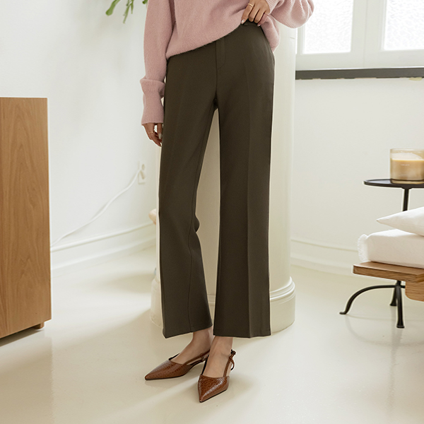Hems Slit Boot-Cut 속 Fleece Slacks