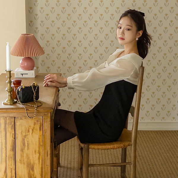 Blouse layered Tweed Wool Mini Dress