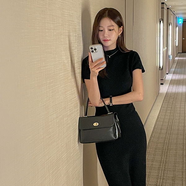 Lamb's Wool Whole Garment Harp Turtleneck Knit Dress