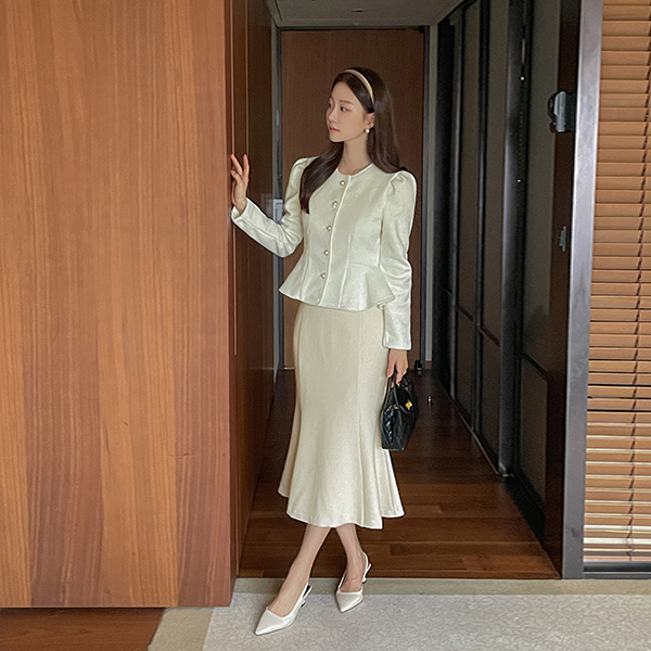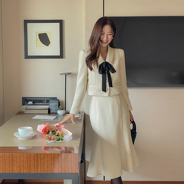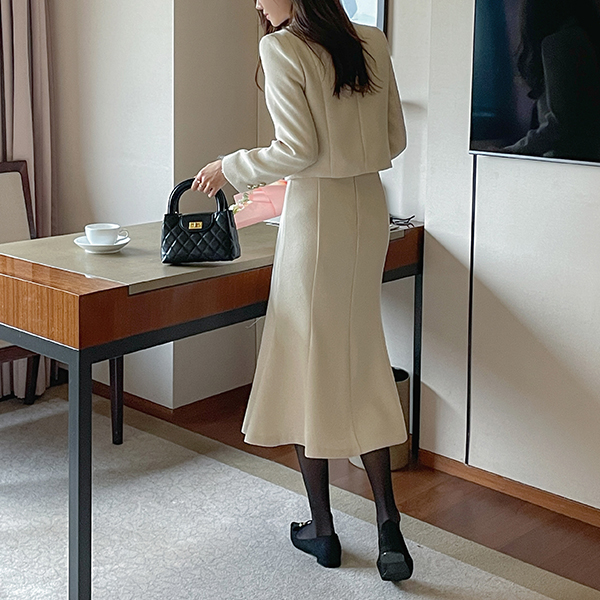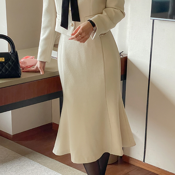 메이빈 Tweed Mermaid Line Set-up Skirt