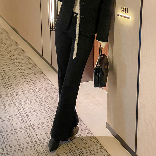 Long-legged Line Cover Boot-Cut Napping Denim Pants