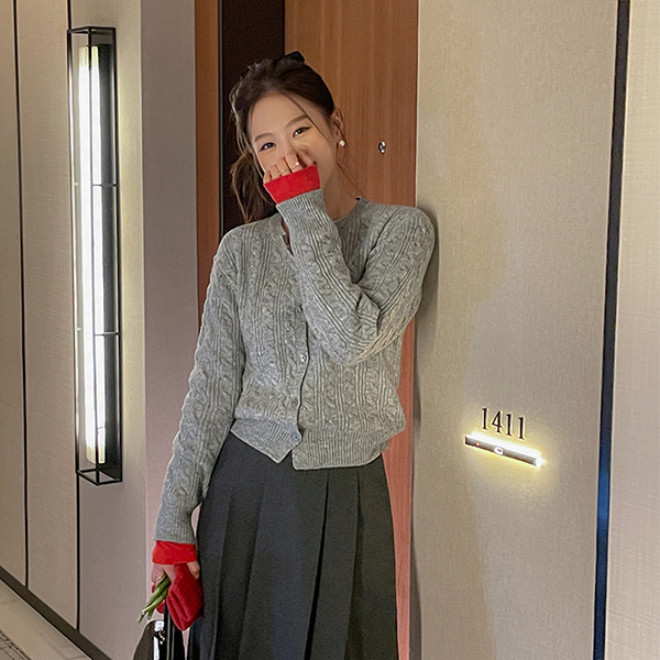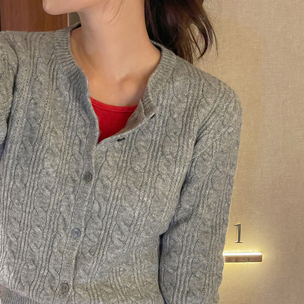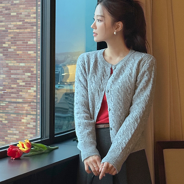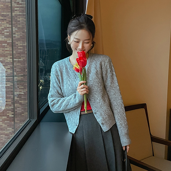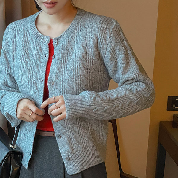 Daily Mood Cable Woven Wool Knit Cardigan