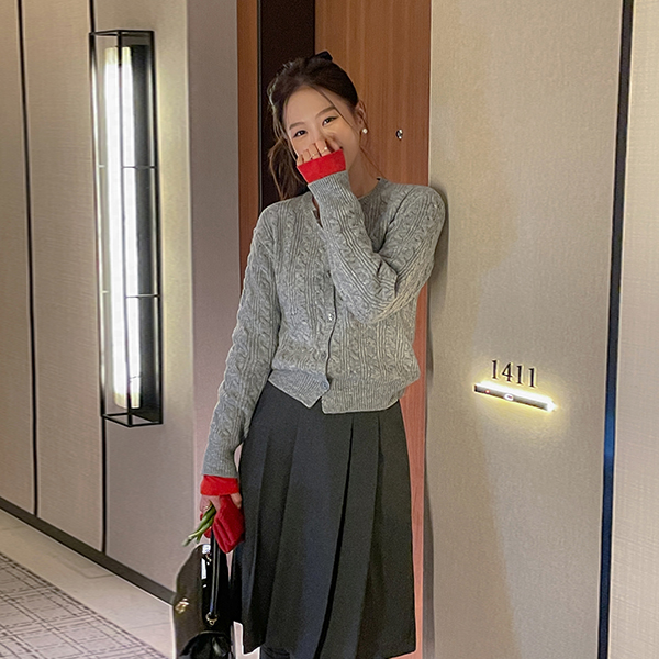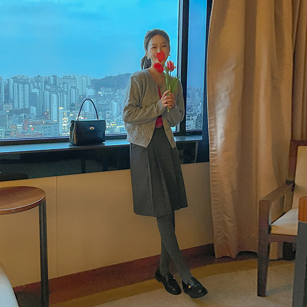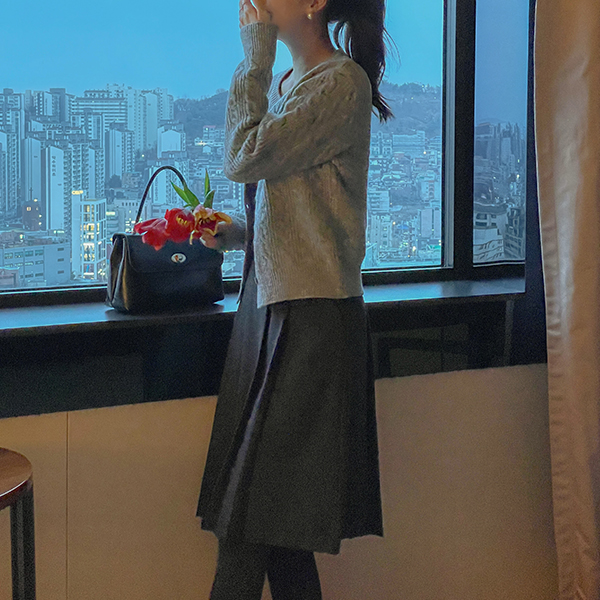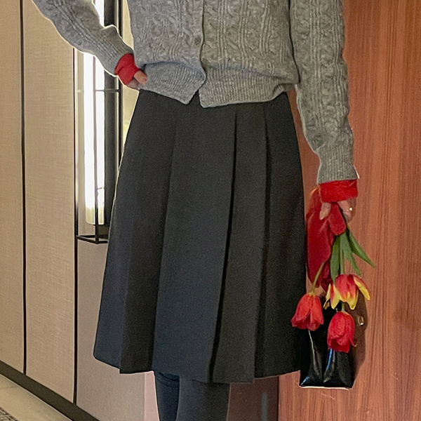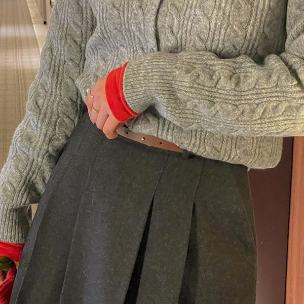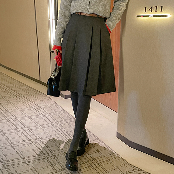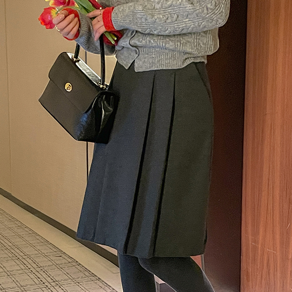 마로니에 Pleats Wool Midi Skirt (BeltSET)
