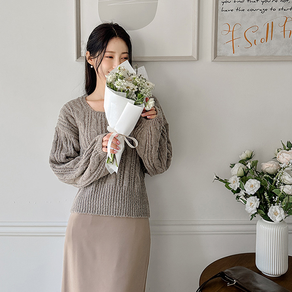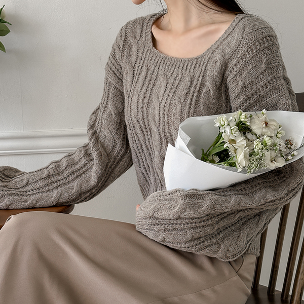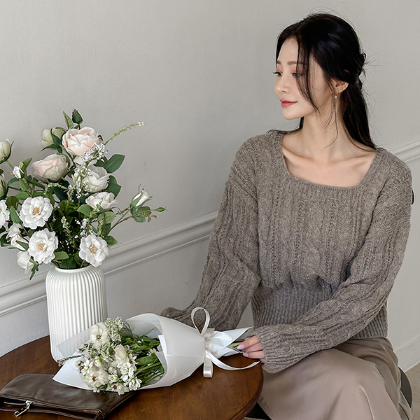 Thick Daily Cable Square Neck Knit