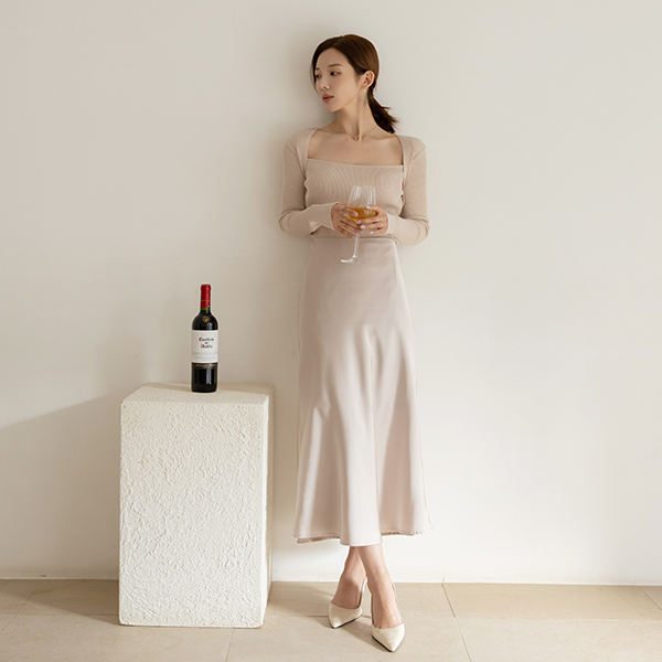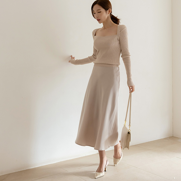 slim-looking Square Neck Bolero Corduroy Slim Knit
