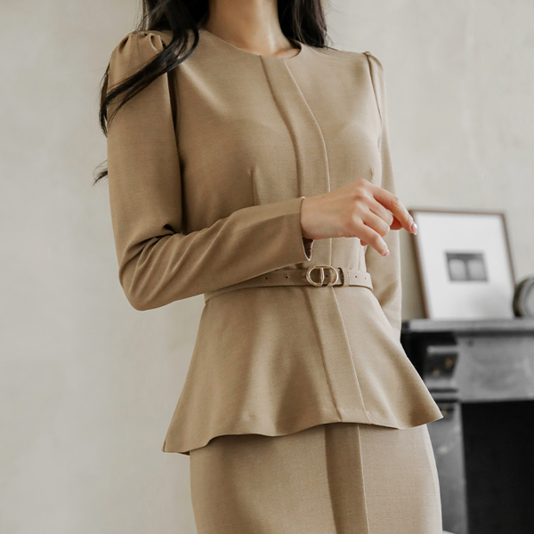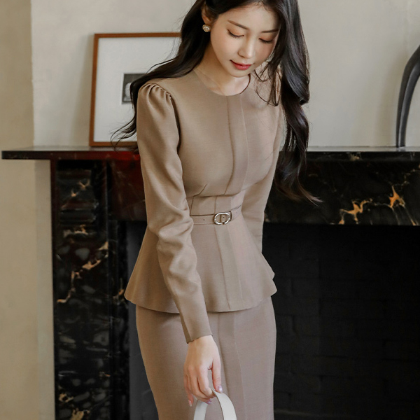 Modern Check Peplum Belted Blouse