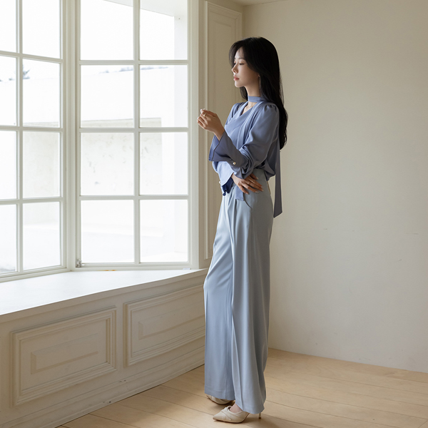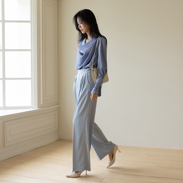 Glossy 드레이프넥 Blouse (ScarfSET)