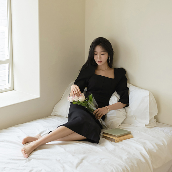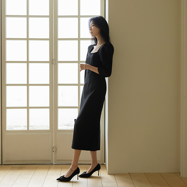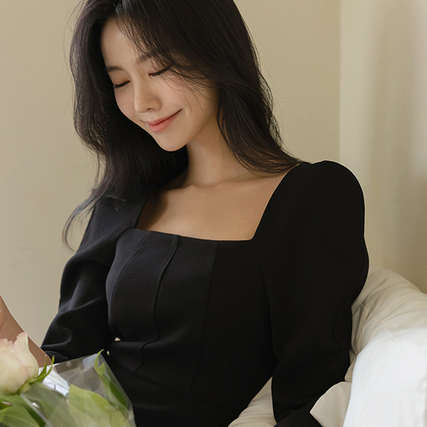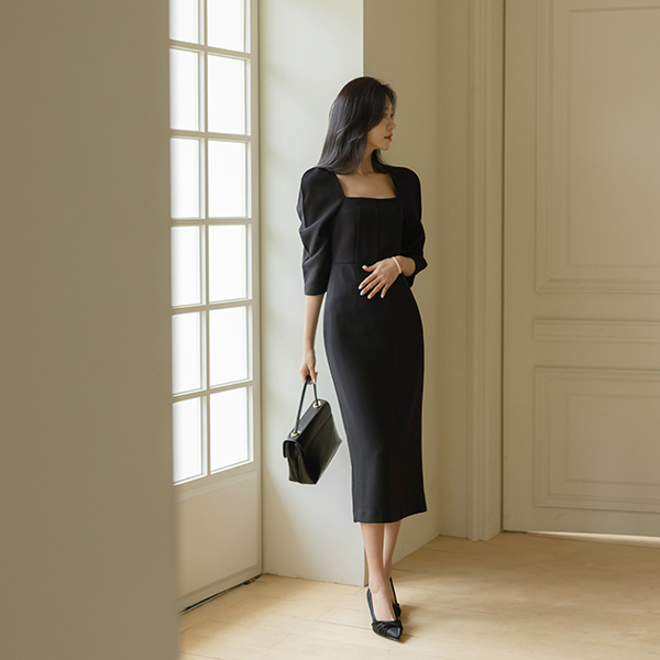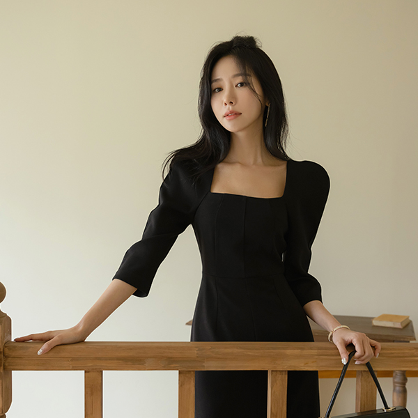 Deep Square Neck Round Shoulder Slim Fit Dress