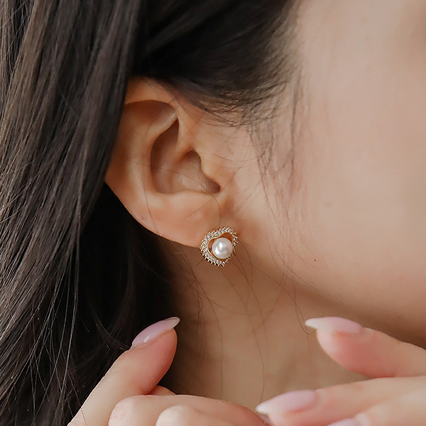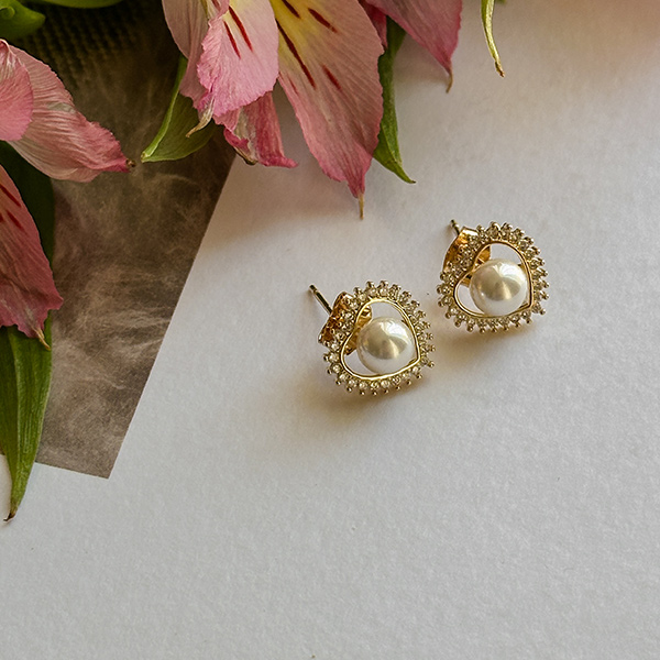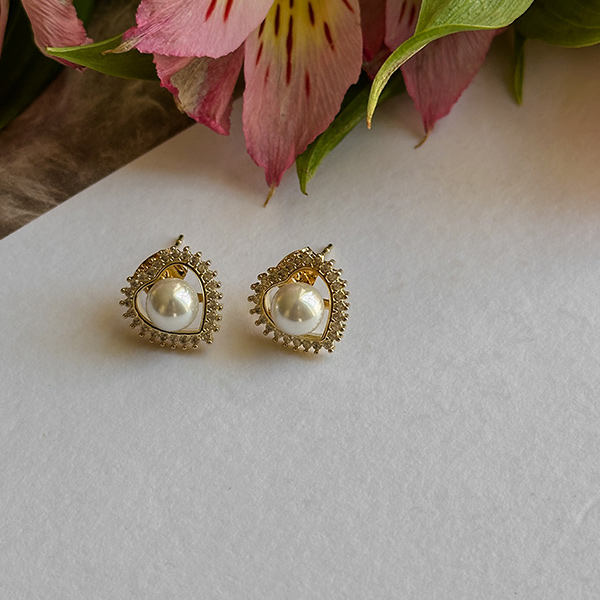 Romantic Gold heart Shape Pearl Earring