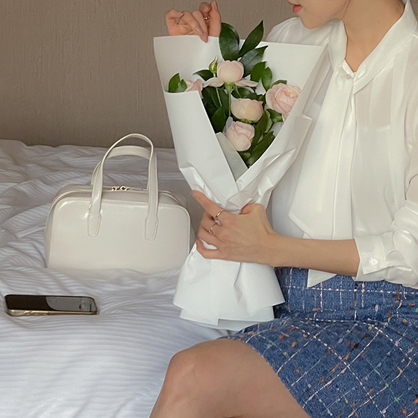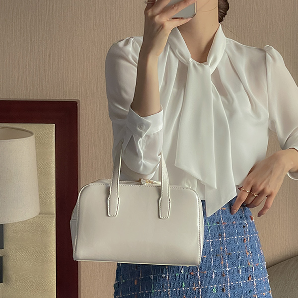 Pure&Romantic Mood Shirring Tie Neck Blouse