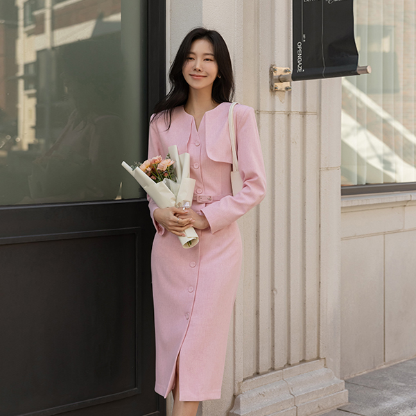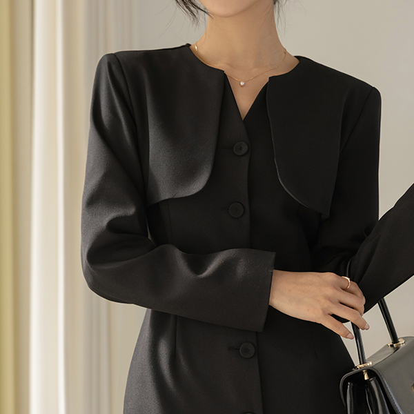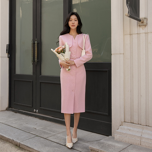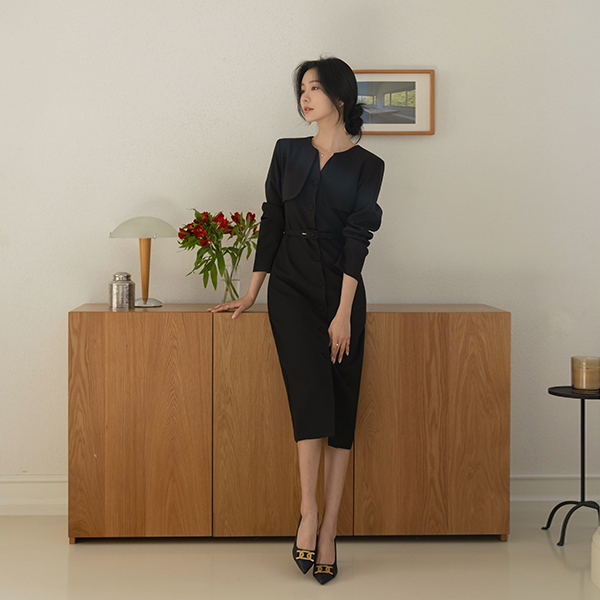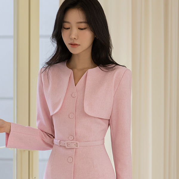 Motive Flap Center Front Vent Collar Slim Fit Dress (BeltSET)