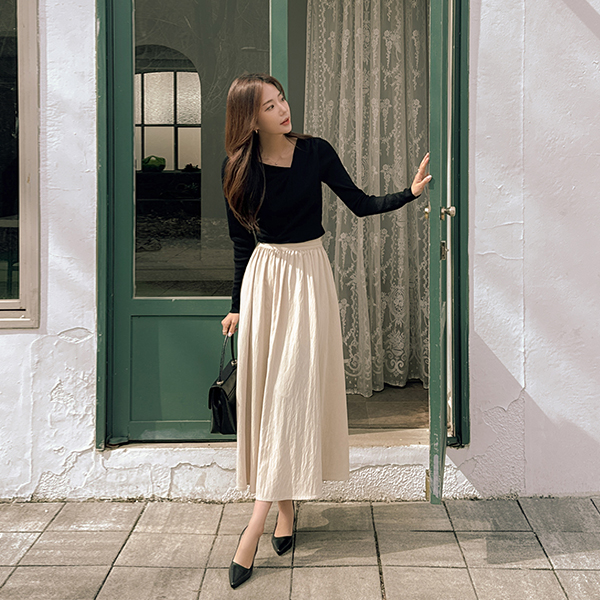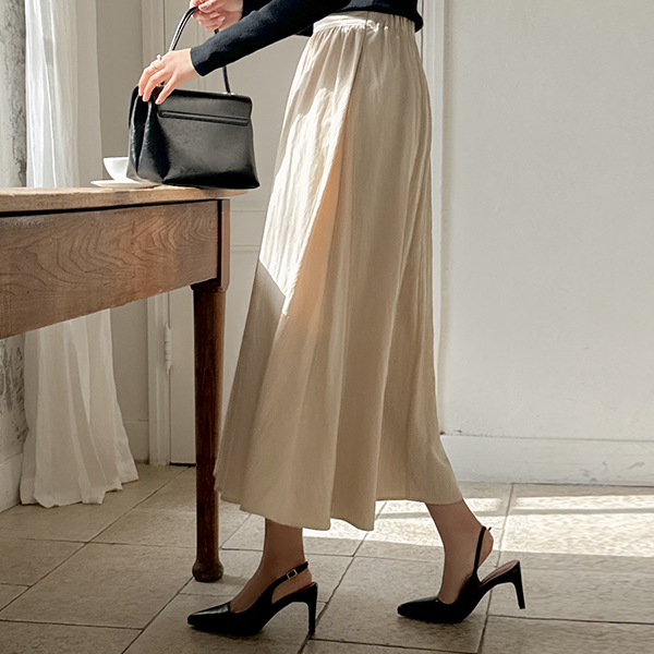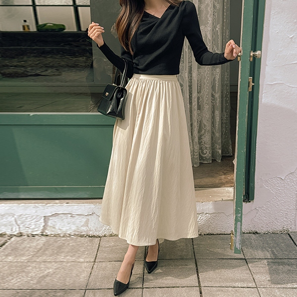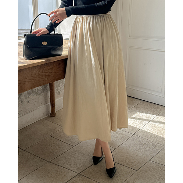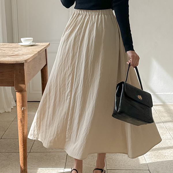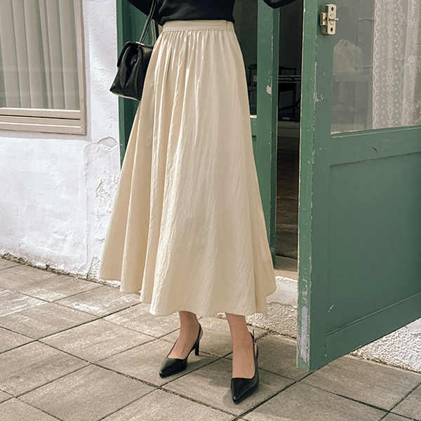 Lovely Shirring Wrinkles Back Banding A-line Long Skirt