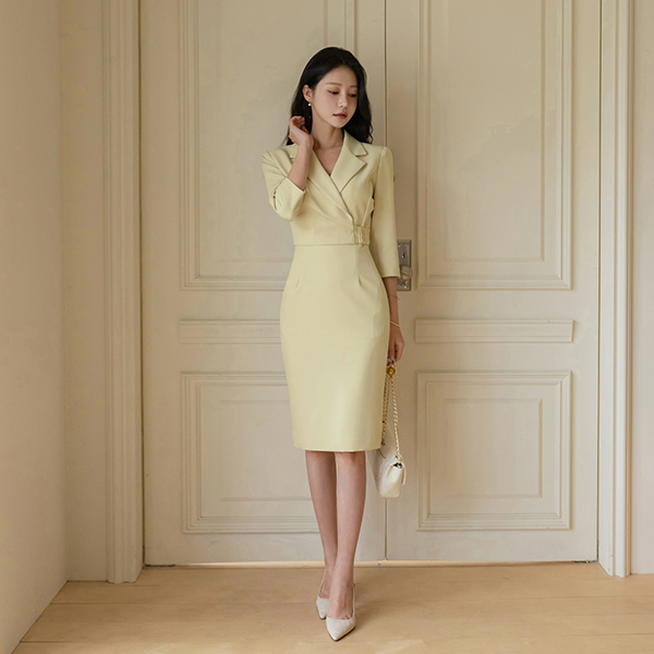 Elegance Collar Wrap Buckle Point Dress(Three-Quarter Sleeves)
