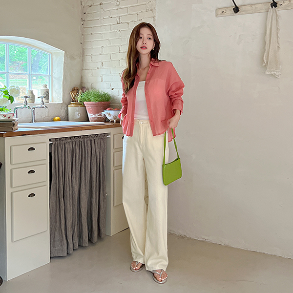 Straight Neckline Cap 내장 Corduroy Sleeveless T-shirt