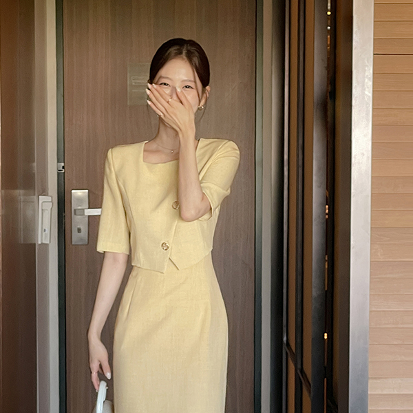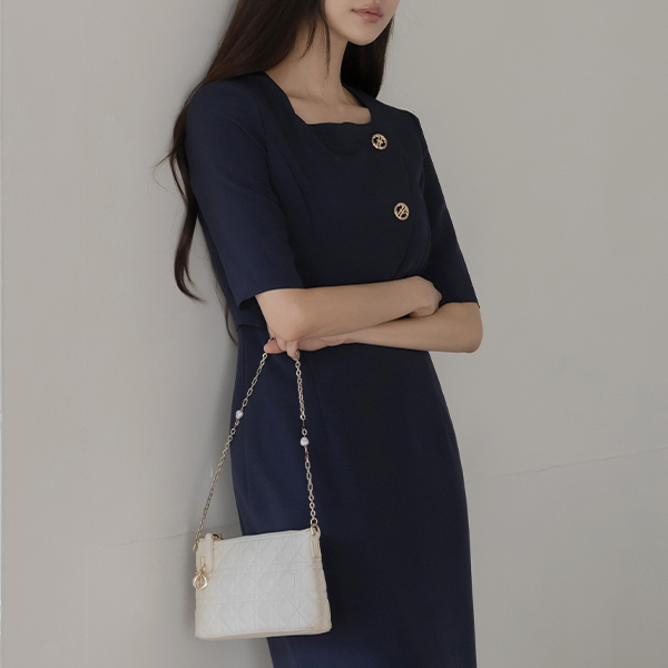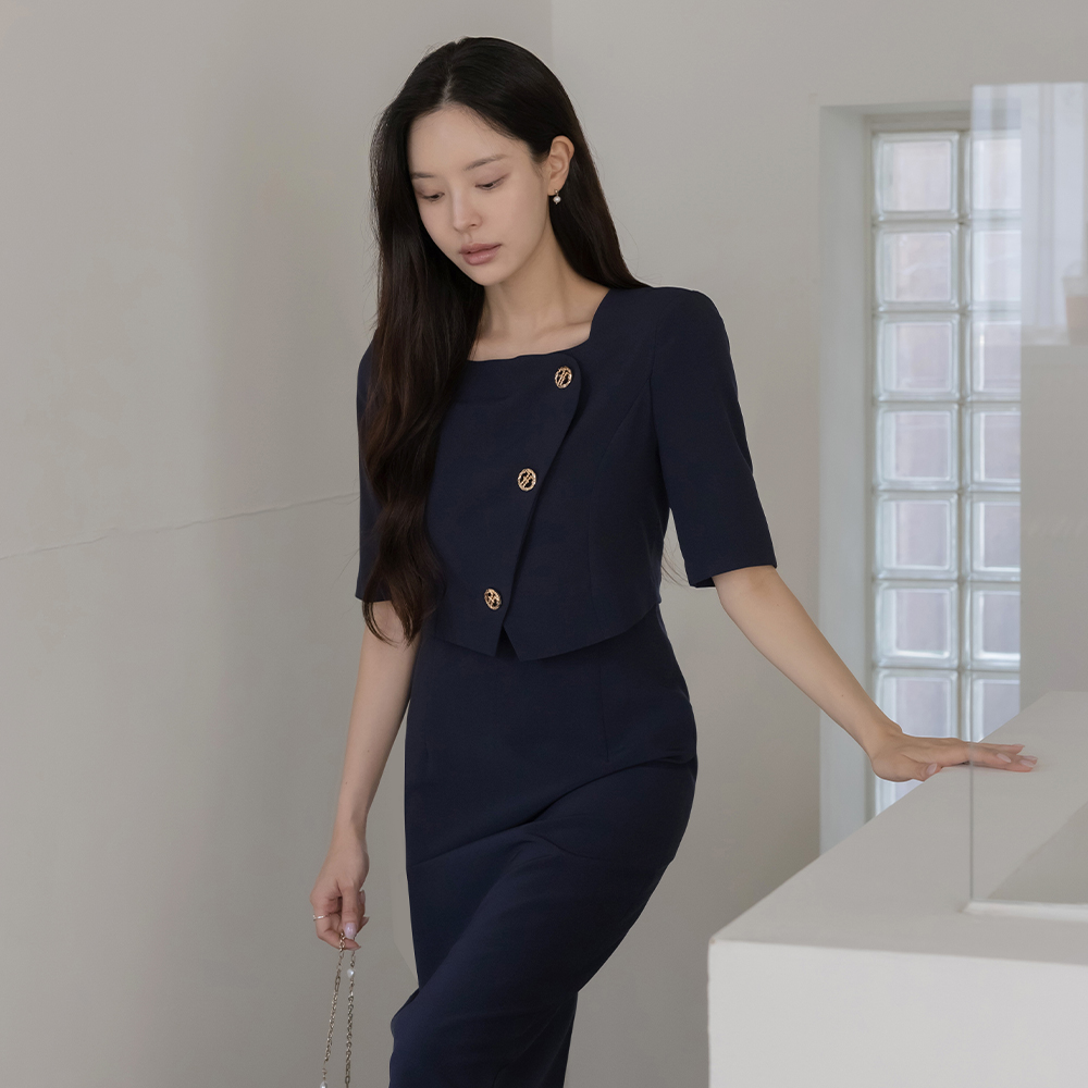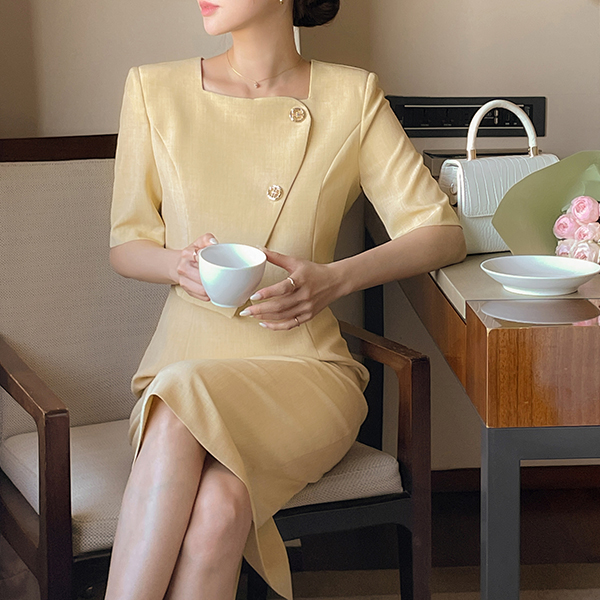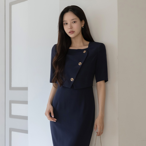 layered Style Diagonal Gold Button Dress