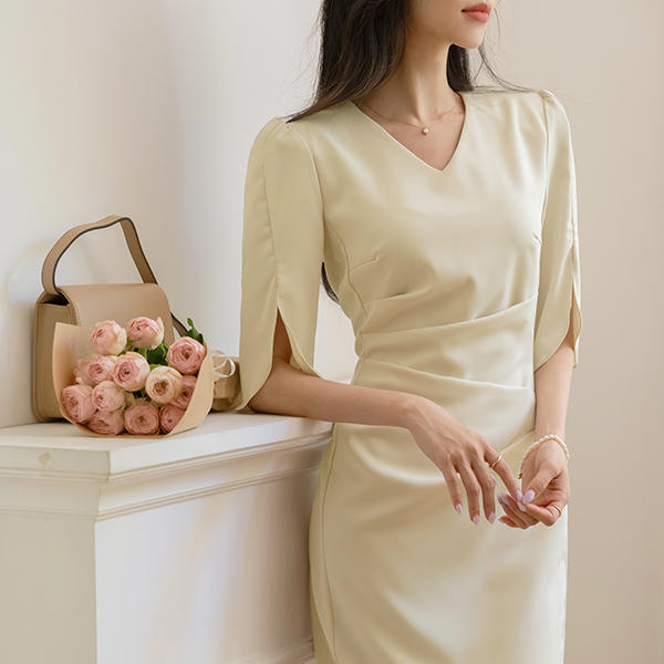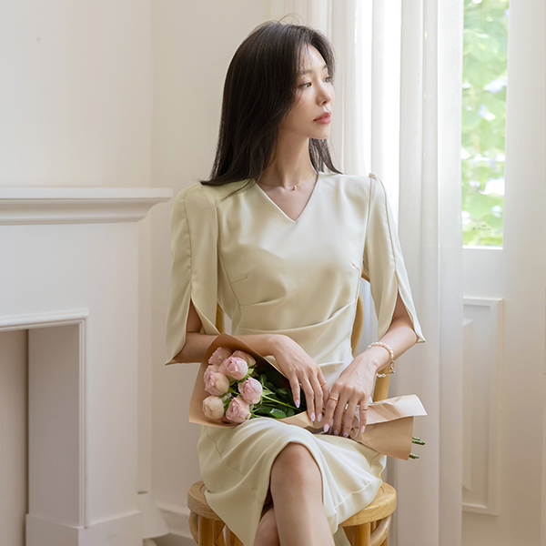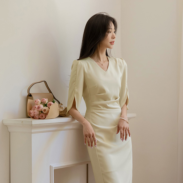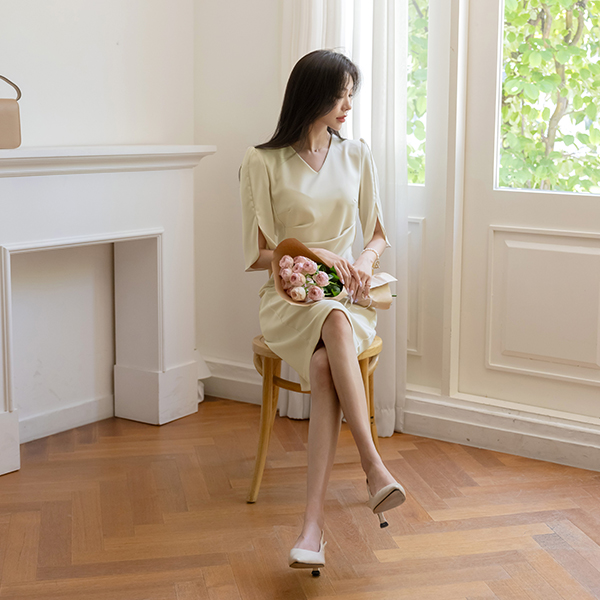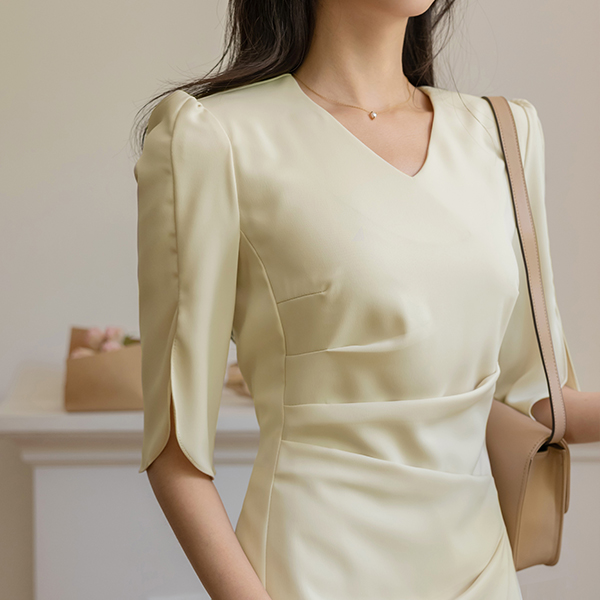 Elegance Shirring Tulip Sleeves Dress
