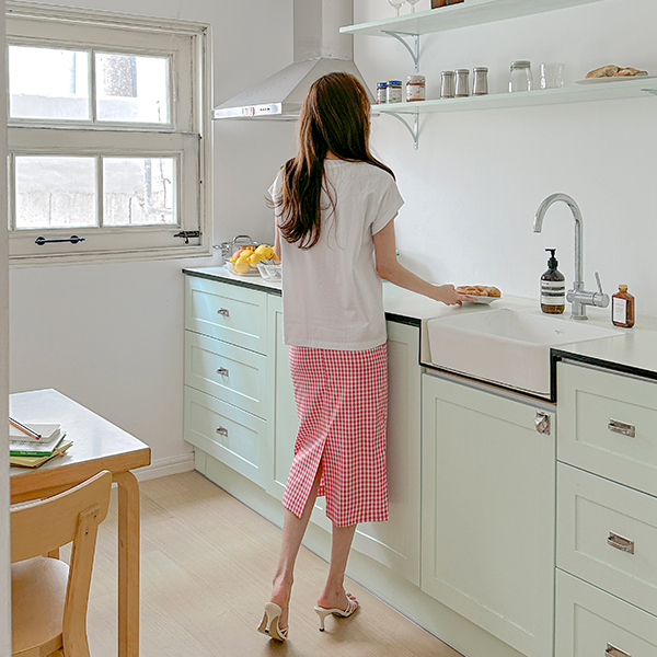리리 Summer Check H-line Span Skirt