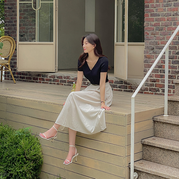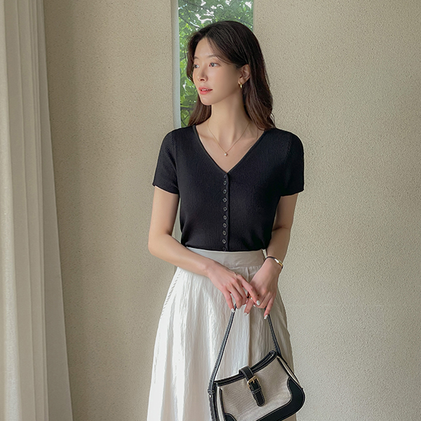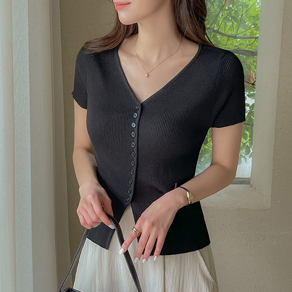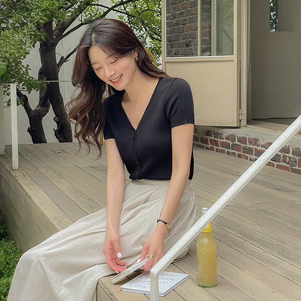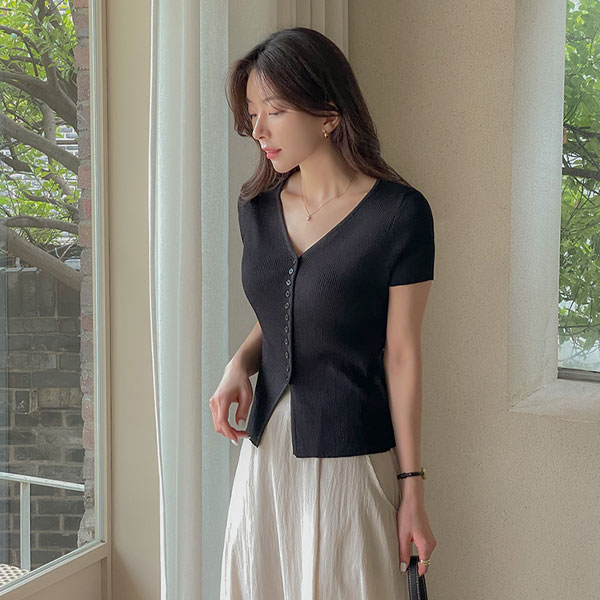 폴링 YNeck Button Cardigan
