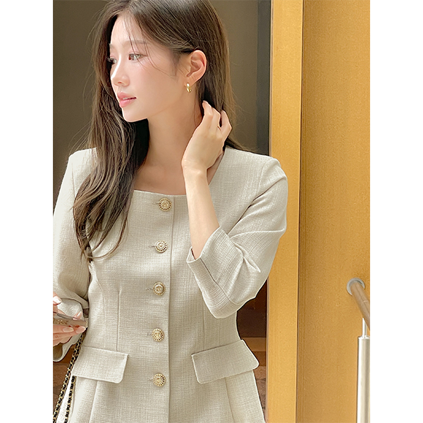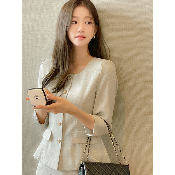 Tweed Three-Quarter Sleeves Set-up Jacket